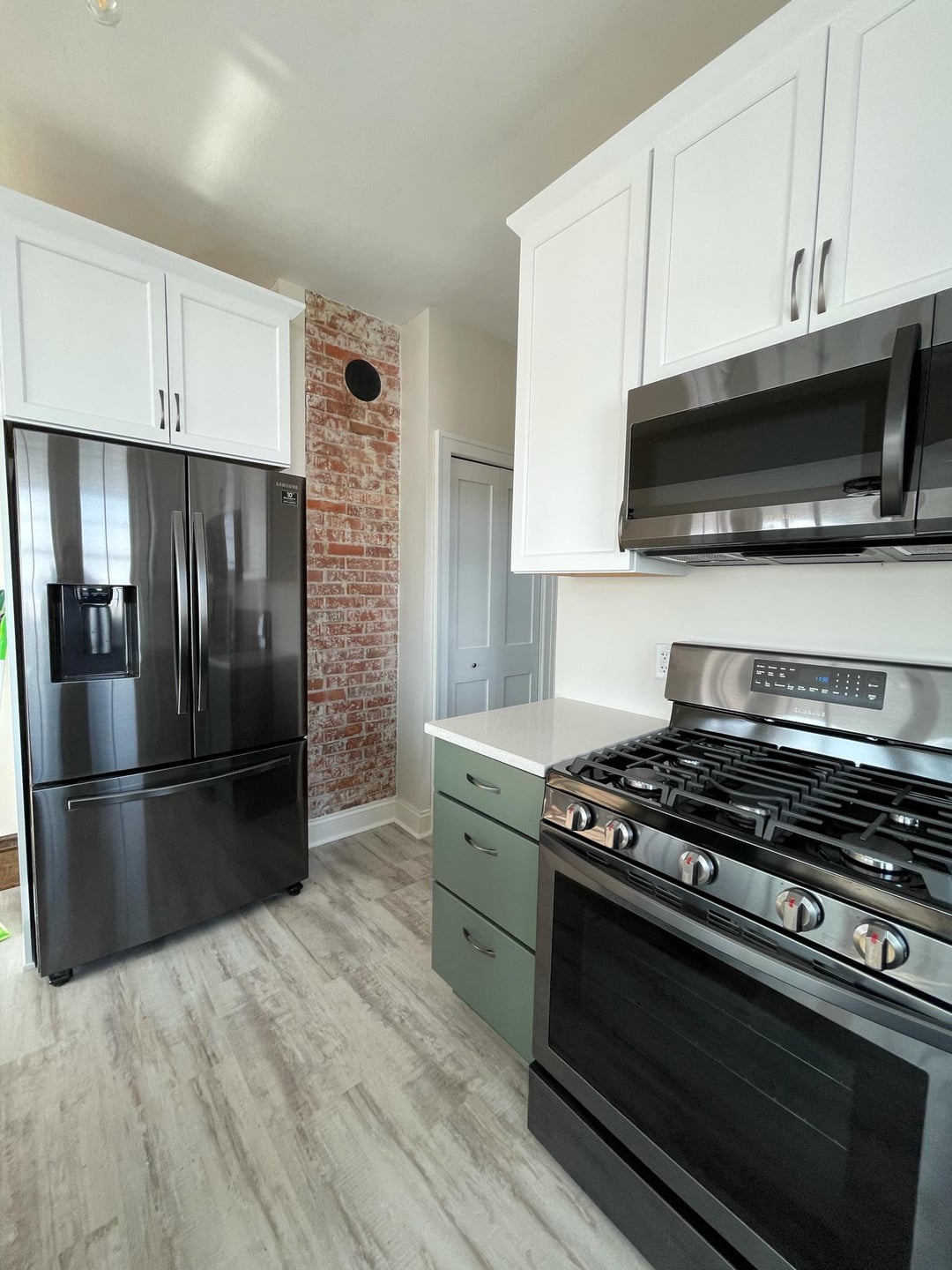 In a recent project in a Beacon Hill brownstone, we discovered an old brick chimney hidden behind a wall that the homeowners wanted to remove. Instead of seeing it as an obstacle, we exposed the brick and made it a stunning design feature, wrapping it with custom cabinetry to create a unique and functional focal point.